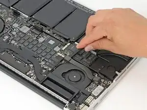 Снимите кабель платы ввода-вывода с MacBook Pro.