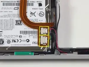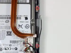 Отключите оранжевый ленточный кабель жесткого диска от логической платы.