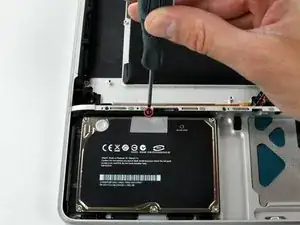 Удалите один крестовой винт, крепящий кронштейн жесткого диска к верхней части корпуса.