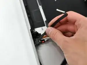 Используя плоский конец лопатки, аккуратно отожмите разъем сабвуфера прямо вверх от логической платы.