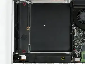 Удалите следующие три крестовых винта, крепящих оптический привод к верхней части корпуса: