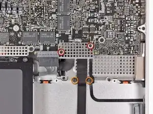 Два винта Phillips 1,6 мм, фиксирующие экран, покрывающий разъем кабеля жесткого диска.