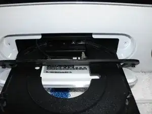 Удалите два винта Philips, расположенные по правую и левую стороны лотка оптического привода.