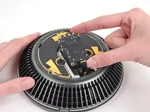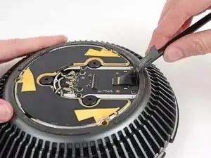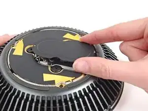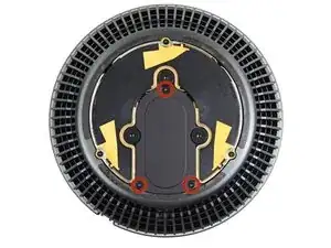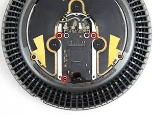 Снимите пять винтов Torx T10 длиной 5,1 мм, расположенных по внешнему периметру узла вентилятора.