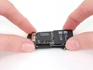 Снимите два винта Torx T4 длиной 3,7 мм, фиксирующие карту AirPort к плате AirPort.