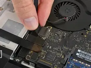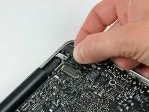 Осторожно потяните разъём кабеля камеры вправо и выньте его из гнезда на карте AirPort.