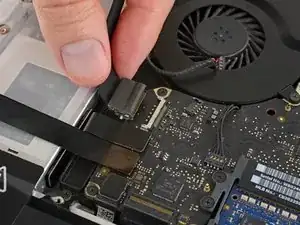 Тяните кабель параллельно плоскости платы логики в направлении оптического привода. Нельзя тянуть вверх, иначе вы повредите разъём.