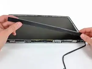 Работая справа налево, аккуратно продолжайте освобождать и поднимать крышку сцепления вдоль нижнего края сборки дисплея.