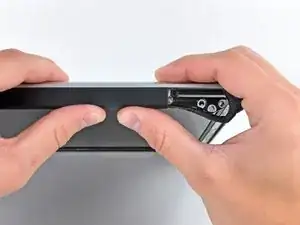 Удалите по два наружных винта Torx 6 мм с каждой стороны, фиксирующих дисплей к верхней части корпуса (всего четыре винта).