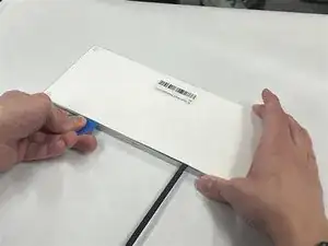 Нагрейте по периметру нижней крышки, чтобы размягчить клей, которым нижняя крышка прикреплена к шасси.