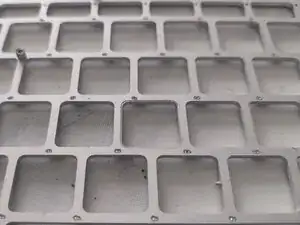 Проверьте, что ВСЕ заклёпки удалены. Хорошая идея — провести пальцем по местам, где были заклёпки, чтобы убедиться, что поверхность ровная и отверстия чистые и готовы для винтов, иначе новая клавиатура не ляжет плотно в корпус.