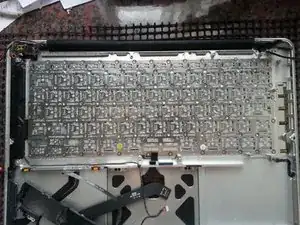 Замена клавиатуры требует демонтажа почти всех компонентов в вашем MacBook Pro. Выполните шаги 1–36 руководства Замена верхнего корпуса MacBook Pro 13" Unibody середина 2012 года.