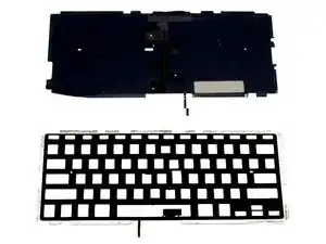 Подсветка состоит из 3 слоёв: очень хрупкого покрытия подсветки, прозрачного пластикового слоя и очень хрупкого шаблона раскладки клавиатуры. Мы НЕ должны повреждать эти части, если планируем использовать их снова, поэтому требуется максимальная осторожность. Они склеены между собой, но при аккуратном обращении их можно разделить.