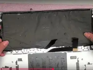 Настоятельно рекомендуется надеть прочные толстые перчатки: сначала нужно приподнять край клавиатуры и аккуратно отогнуть его, чтобы получить надёжный хват. Края клавиатуры ОЧЕНЬ ОСТРЫЕ и легко рвут тонкие материалы и кожу, поэтому требуется ПОВЫШЕННАЯ ОСТОРОЖНОСТЬ.