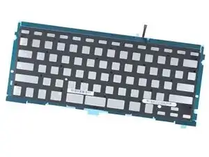 Подсветка состоит из 3 слоёв: очень хрупкого слоя подсветки, прозрачного пластикового слоя и очень хрупкого шаблона расположения клавиш. Мы НЕ хотим повредить эти слои, если планируем использовать их повторно, поэтому требуется предельная осторожность. Они склеены между собой, но при аккуратном обращении их можно разделить.