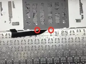После снятия подсветки с корпуса мы можем наклеить на тыльную сторону клавиатуры малярную ленту — это поможет поймать все заклёпки, которые отлетят при вырыве клавиатуры.