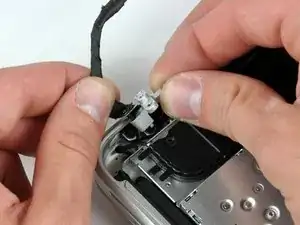 Оттяните шлейф от его гнезда, чтобы отключить. Убедитесь, что подняли фиксирующий язычок перед тем как тянуть шлейф, иначе можно его повредить.
