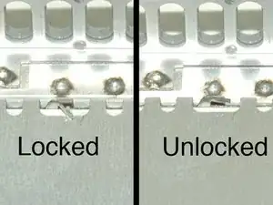 Приведено изображение того, как должны выглядеть язычки в разблокированном состоянии.