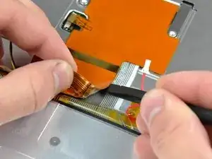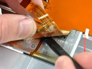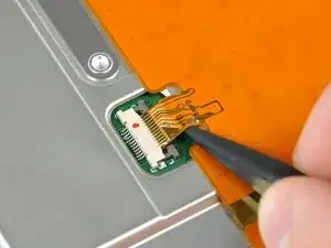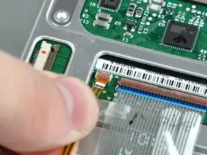 Используйте ногти или кончик лопатки, чтобы отвести фиксатор кабеля ZIF от его разъёма.