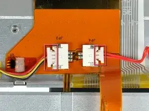 Используйте ногти, чтобы отвести фиксатор кабеля ZIF от его разъёма. (Сдвиньте две коричневые части вниз на 1 мм)
