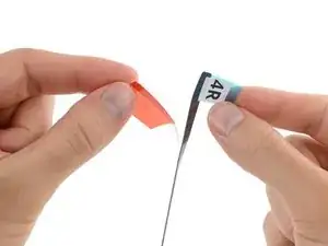 Снимите пленку с 4R полосы, доставая сверху и тянув за вкладку прямо вверх от нижнего края дисплея.