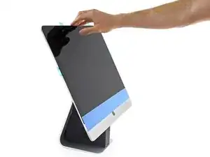 Удерживайте дисплей одной рукой, пока вы снимаете клейкие подкладки в следующих шагах, или аккуратно прислоните его к корпусу iMac.