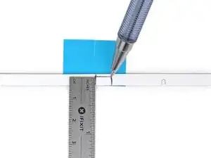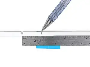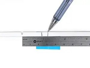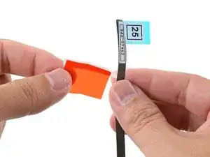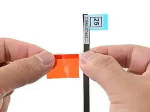 Следующие несколько шагов покажут, как изменить и установить нижнюю правую клеевую полоску (полоска 25), которая включает вырез, который должен быть совмещён с левым микрофоном, и вырез, который вам нужно сделать, чтобы учесть правый микрофон.