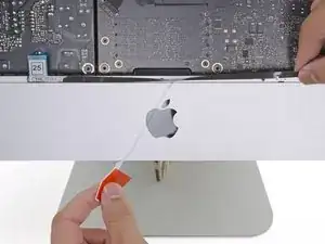 Используйте малярную или клейкую ленту, чтобы временно зафиксировать нижний край дисплея к корпусу iMac.
