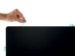 Повторите предыдущие шаги для клеевой ленты 4L, разместив её вдоль нижнего левого края iMac.