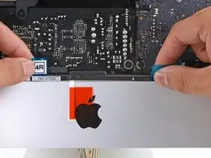 Используйте малярную ленту или клейкую ленту, чтобы временно закрепить нижний край дисплея к корпусу iMac.