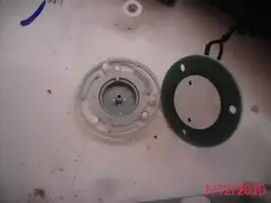 Вот она с поддоном кнопки, приподнятым. Это открывает белую пластиковую шайбу под ней.