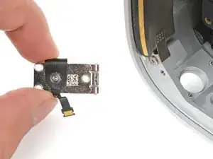 Используйте отвертку T5 Torx, чтобы выкрутить два винта длиной 12 мм, закрепляющих динамик.