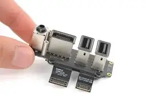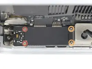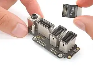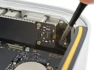 Используйте отвёртку Torx T4, чтобы выкрутить два винта длиной 15.5 мм, фиксирующие внешний край платы ввода/вывода.