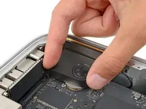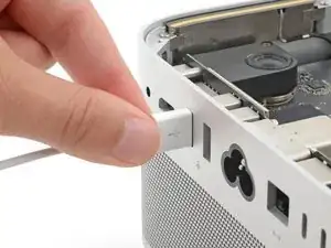 Положите Mac Studio и подключите кабель к одному из портов, чтобы убедиться в правильной посадке и выравнивании, при необходимости отрегулируйте порт — кабель должен легко вставляться и извлекаться.