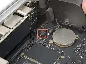 Используйте отвёртку Torx T8, чтобы выкрутить стоечный винт сразу справа от крышки.