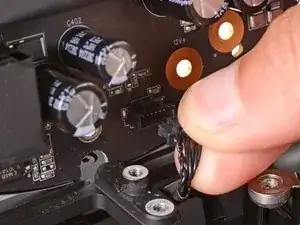 Свободной рукой сожмите головку разъёма блока питания, чтобы отщёлкнуть её, и потяните прямо от гнезда, чтобы отключить кабель.