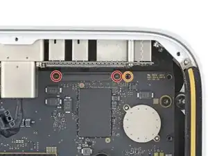 Используйте отвёртку Torx T6, чтобы выкрутить два винта длиной 20 мм, фиксирующие внутренний край платы ввода/вывода.