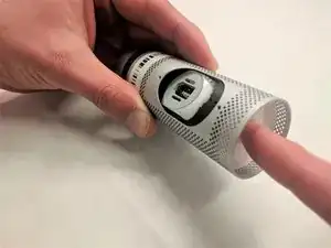 Нажмите на логотип Apple, чтобы выдвинуть и отделить рамку корпуса от корпуса веб-камеры.