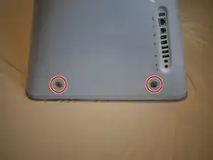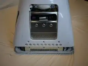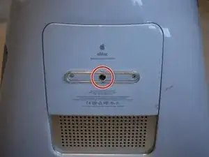 Положите eMac экраном вниз на ровную поверхность. Я считаю удобным использовать ковровое покрытие, так как компьютер довольно тяжёлый.