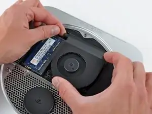 Приподнимите вентилятор в мини, чтобы освободить доступ к его разъёму.