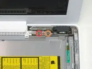 Удалите два винта с ушком Phillips #00 длиной 5,2 мм со стороны, где расположен оптический привод.