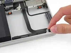 Если есть пластиковая петля, захватите её и потяните разъем батареи в направлении переднего края устройства. Для моделей конца 2011 года разъем батареи не имеет петли и представляет собой штекер, вставляемый прямо в материнскую плату — чтобы снять, подденьте штекер прямо вверх.