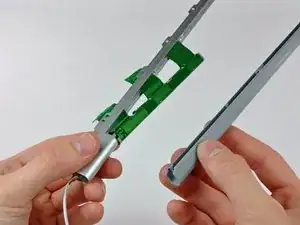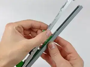 Отделите три зелёные заземляющие ленты антенны от медной ленты вдоль нижнего края ЖК.