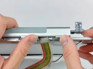 Отключите ленточный кабель трекпада и клавиатуры от платы логики, при необходимости удалив ленту.