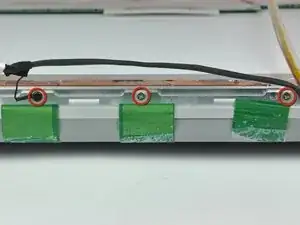 Снимите два винта Phillips длиной 5 мм в нижних левых и правых углах дисплея (всего два винта).