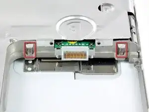 Снимите маленькие смазанные пружины с белыми пластиковыми втулками по обе стороны контактов батареи.