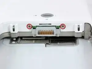 Удалите два винта с крестообразным шлицем по обе стороны контактов батареи.