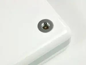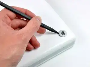 Используйте лопатку или маленькую плоскую отвёртку, чтобы снять три резиновые ножки с нижнего корпуса.