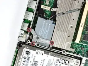 Удалите три крестообразных винта Phillips 3 мм, крепящие кронштейн карты AirPort к каркасу.