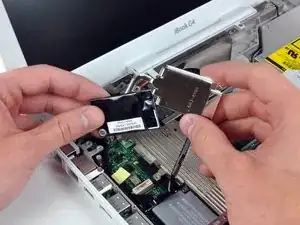 Поднимите кронштейн карты AirPort и выньте его из компьютера.